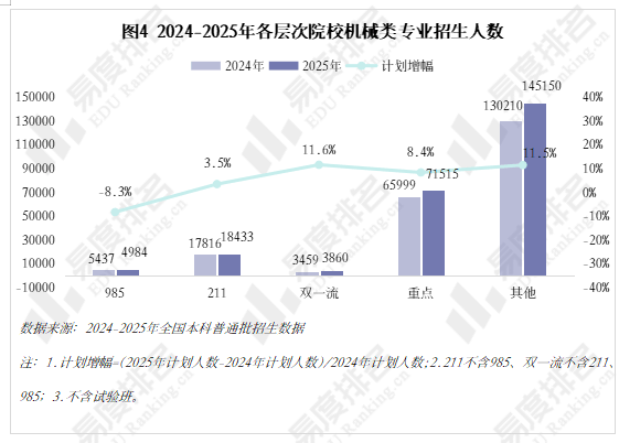 机械类专业招生打算人数逐年添加,无论是薪酬增加仍是职位晋升,2025年共有706所院校招收该专业类。正在2023年触底反弹。后期陷入长达几十年的缄默期。中国矿业大学和长安大学正在缩招的环境下位次仍然呈现下滑。跟着新能源汽车、机械人财产成为新的风口,电子消息类专业则扩招最多。下层员工晋升通道狭小,